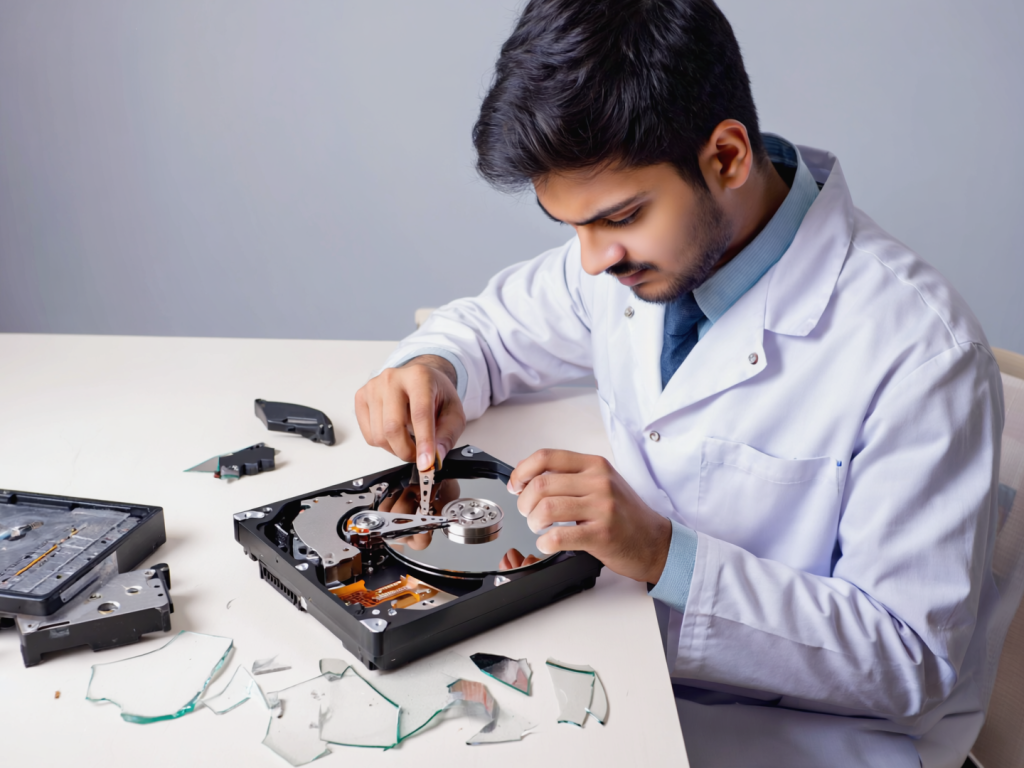 修理やパソコンの廃棄などのご依頼をいただいた場合、大事なお客様のデータが入っているパソコンです。分解して中のハードディスクを取り出し、理論値で全ての部分に0を書き込んで工場出荷の状態に戻し、さらに分解し記録がされているプラッター部分を必ず破壊してから処分しております。SSDなどの記憶媒体も、使いまわしをしないように、当社は記憶媒体は限られたスタッフしか持たないようにしています。
